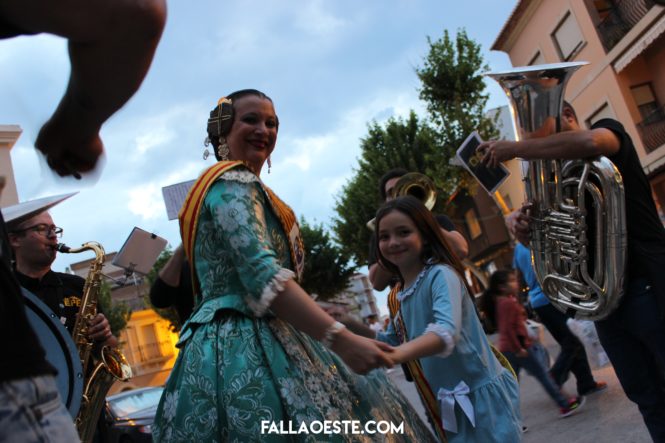 En primer lloc, van anar a buscar a Aitor Tabernero, president infantil, seguit de la xiqueta Celia Llorens, fallera major infantil. Finalment, tots junts van arreplegar a Rosa Pastor, fallera major 2018.