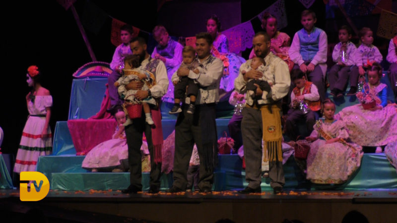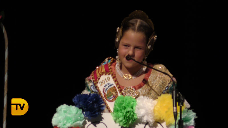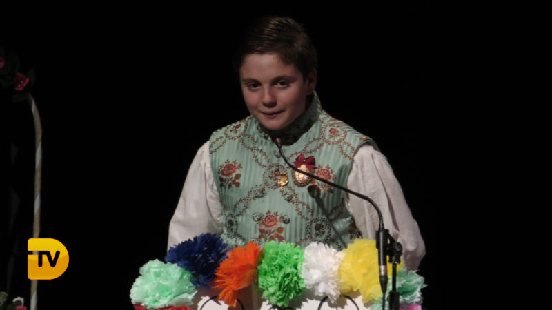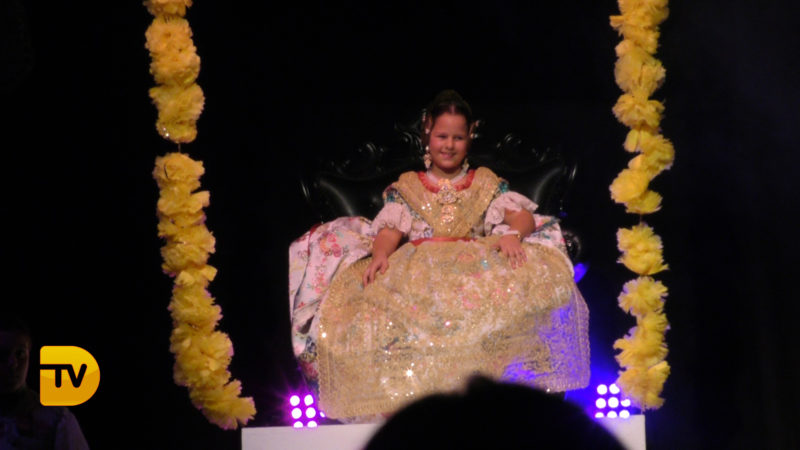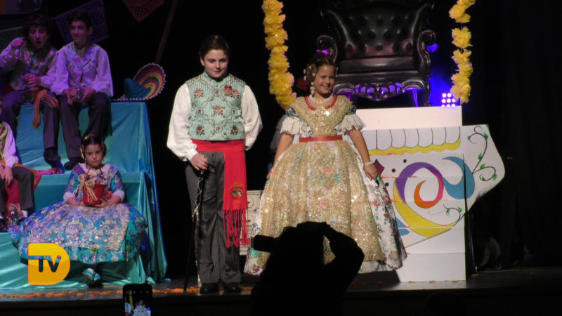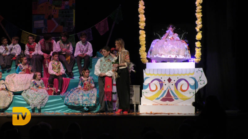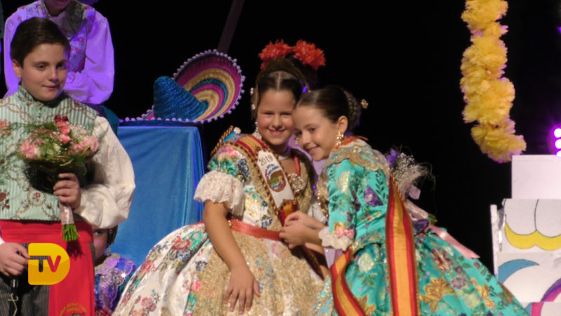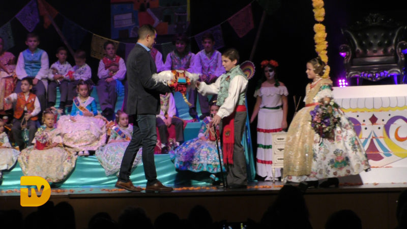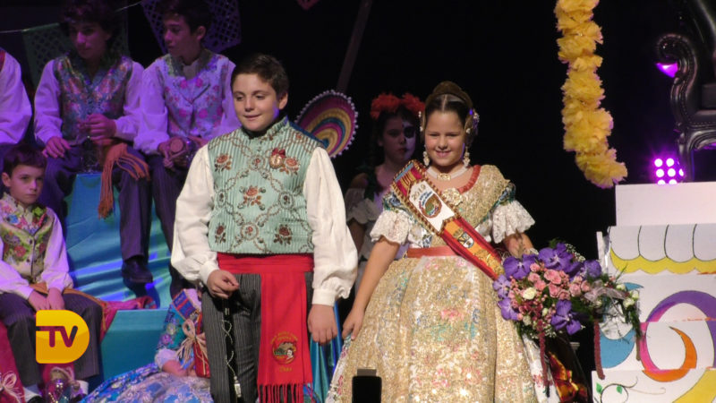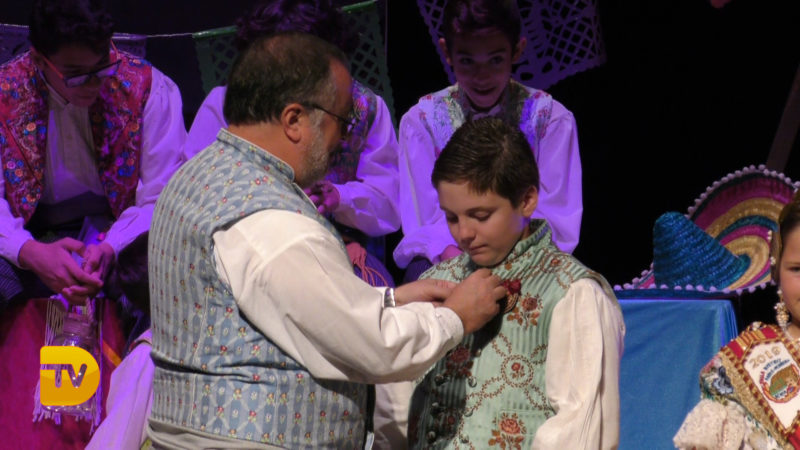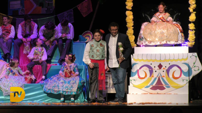 Seguidament, la xicalla de la comissió ompliren l’escenari, per a continuació rebre el president infantil, Pepe González Albo Ferrando, al que el seu pare Casildo li va fer entrega del bastó de president.