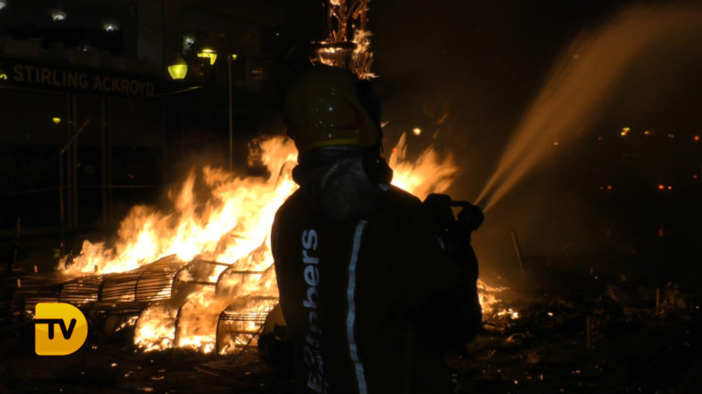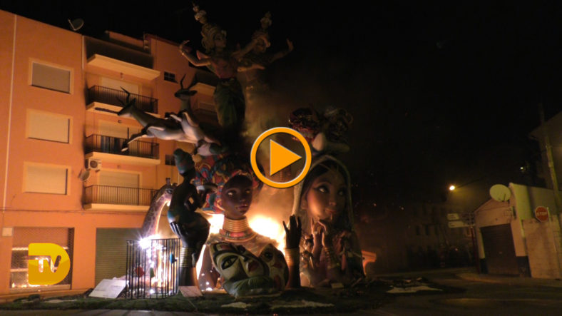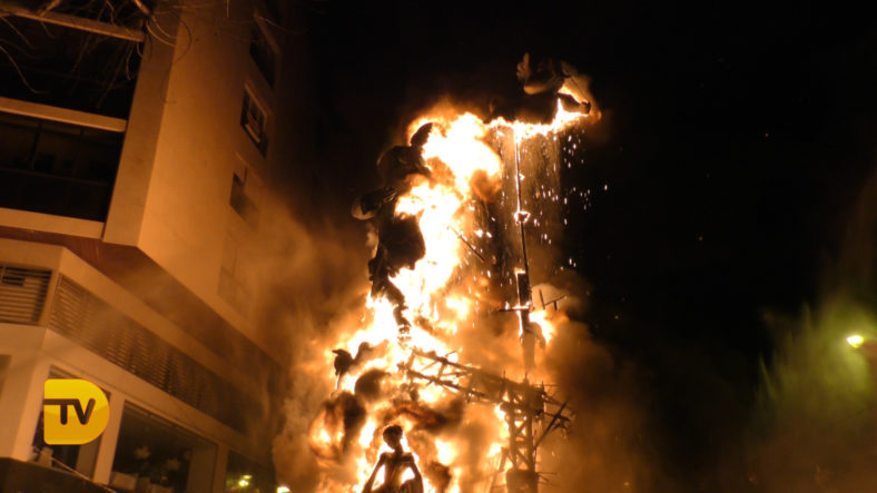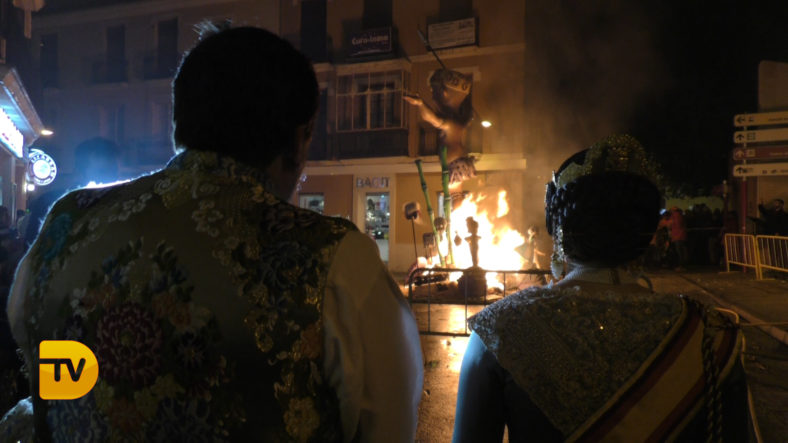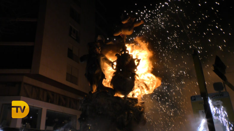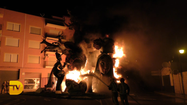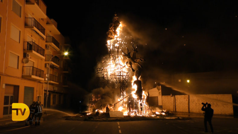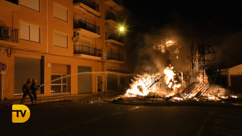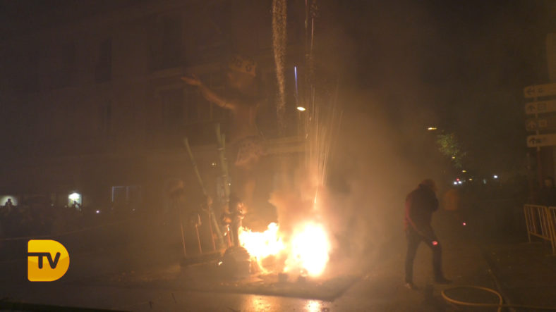Per últim s’ha cremat el monument del primer premi, el de la Falla Baix Mar. Cal incidir que en aquesta cremà l’esquelet de la Falla ha donat susto a l’equip de bombers