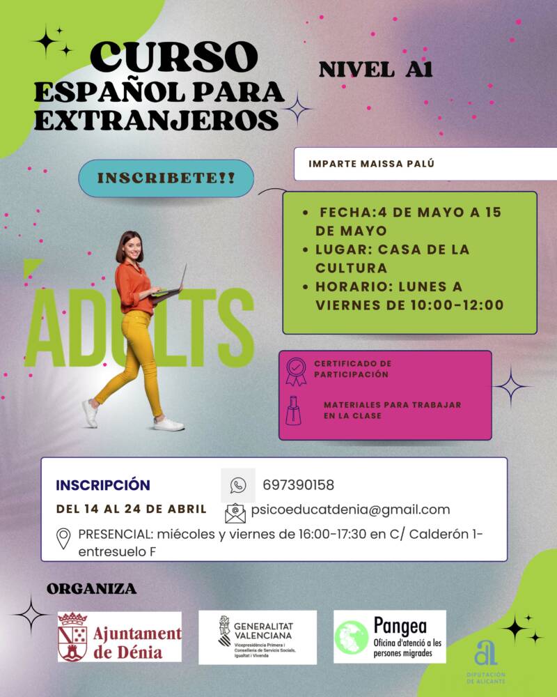La Oficina de Atención a las Personas Migradas (Pangea) del Ayuntamiento de Dénia ha organizado dos cursos gratuitos de español, nivel básico, dirigidos a personas extranjeras, mayores de edad y residentes en Dénia.