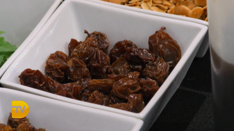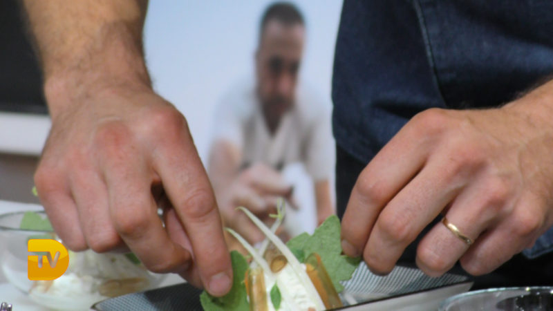 Además, el chef Bruno Ruiz ha realizado una demostración culinaria en la que ha presentado el plato “Ensalada de pasta de pasa, endibias y Cabrales” con la que participó en el I Concurso Internacional de uva de moscatel de Alejandría Dolia / Muscatus de Teulada, y una coca de cordero con salsa de pasas, hierbabuena y nueces caramelizadas. El cocinero ha asegurado “que lo que más me divierte es hacer los platos con productos de la comarca”.