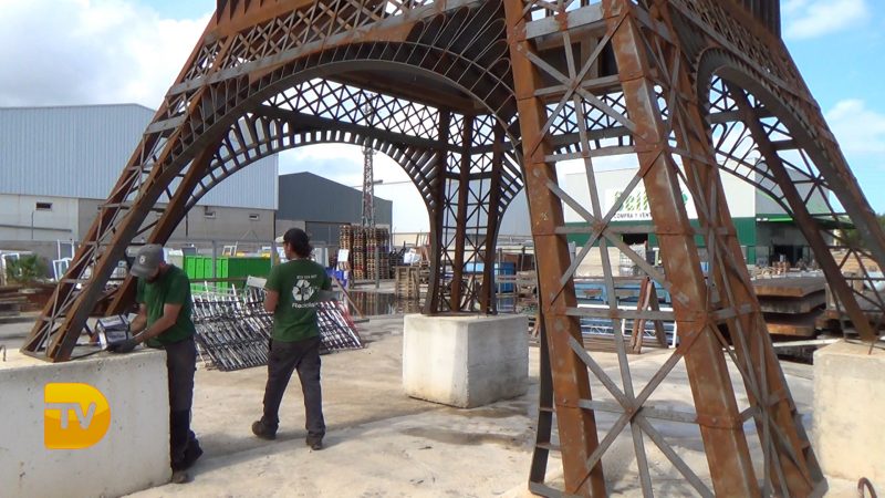 Aprovecharon material de desecho y poco a poco, en módulos separados, fueron rematando el trabajo, tras reciclar varillas, hierro, viejos elementos y otras piezas. Bell’s, empresa de compra-venta de chatarra, se ha ocupado de ensamblar módulos y sobre cuatro bloques de hormigón, procedentes de la obra del trenet de La Marina, de levantar la réplica de la Torre Eiffel.