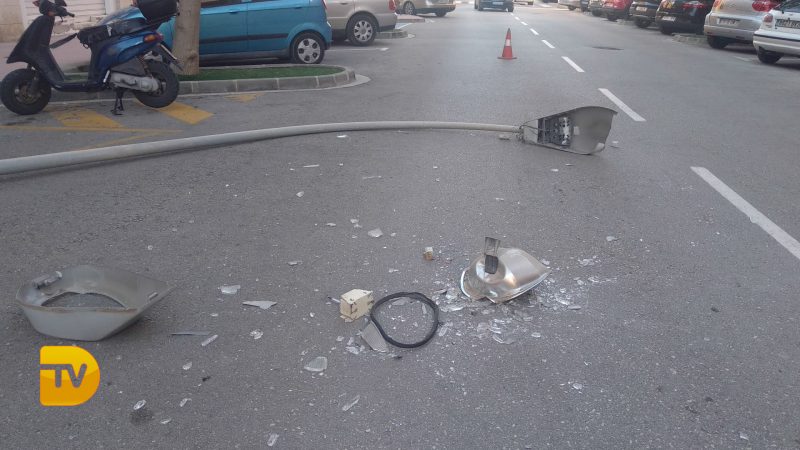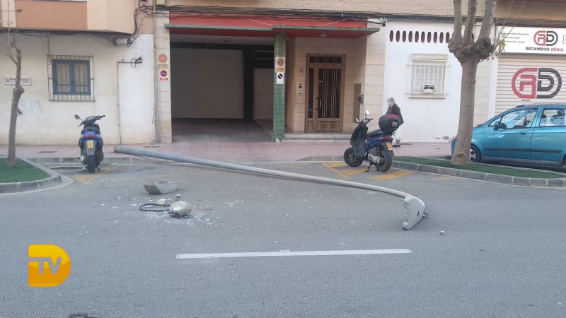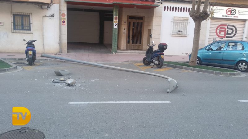 Las fuertes rachas de viento que estamos sufriendo en Dénia, han provocado la caída de una farola en la Avenida del Marquesado. Al caer la farola por suerte no ha provocado daños personales solo materiales.