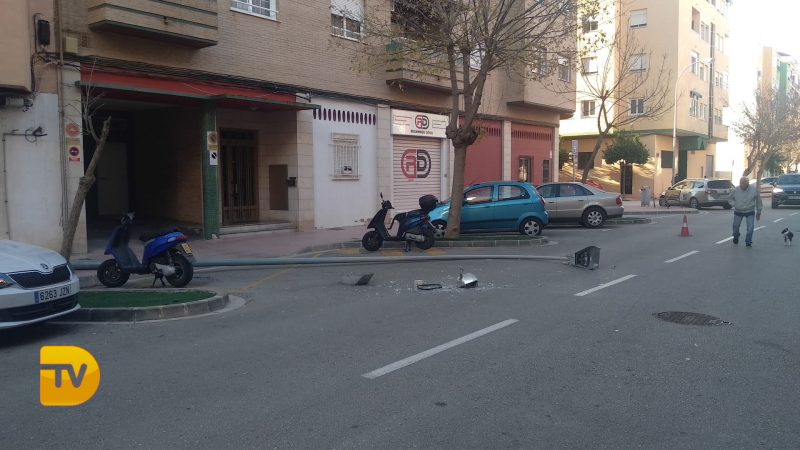 Las fuertes rachas de viento tumban una farola
