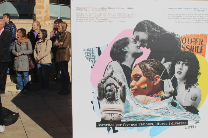 Los collages de la diseñadora gráfica Mireiacreativa cubren las caras de cuatro cubos de gran formato en un montaje “que no es solo una muestra artística, sino una invitación colectiva a mirar, a escuchar y a repensarnos en el género y la igualdad”, ha afirmado el regidor de Igualdad, Javier Scotto, en la presentación de la exposición.
