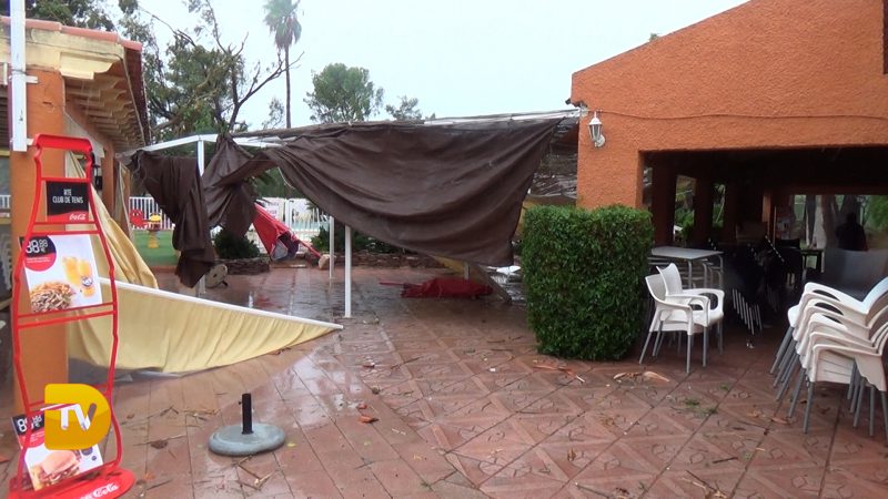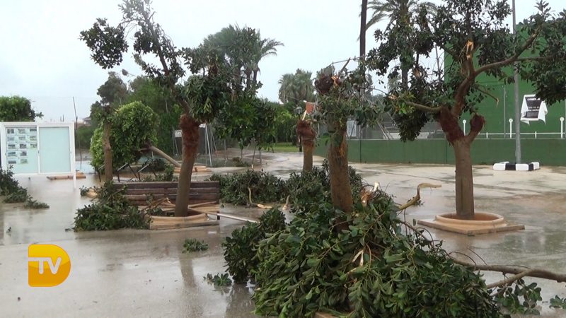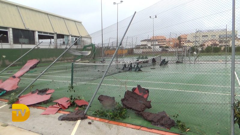Las instalaciones del club de tenis , también ha sido gravemente dañado,Pistas, vallado, árboles, restaurante cafetería.