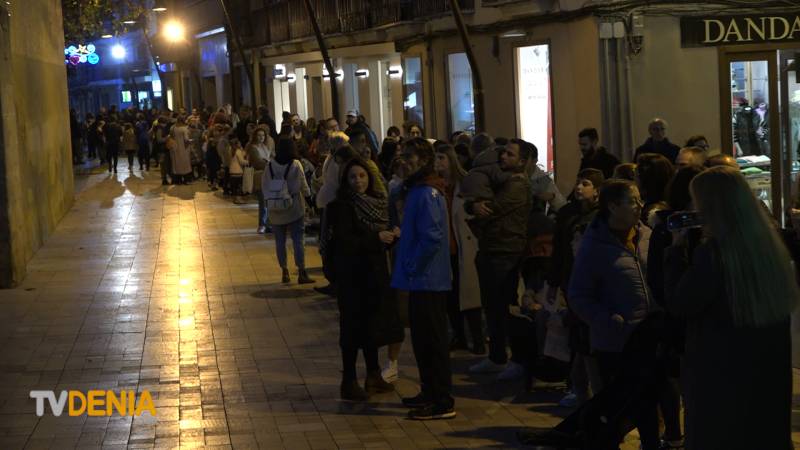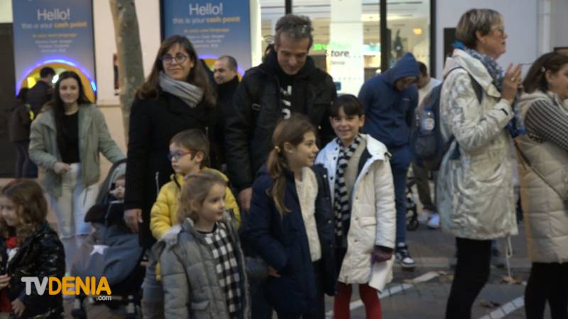 Multitud de familias se acercaron a la calle Marqués de Campo para acompañar en su recorrido a los pajes hasta los soportales del Ayuntamiento de Dénia.