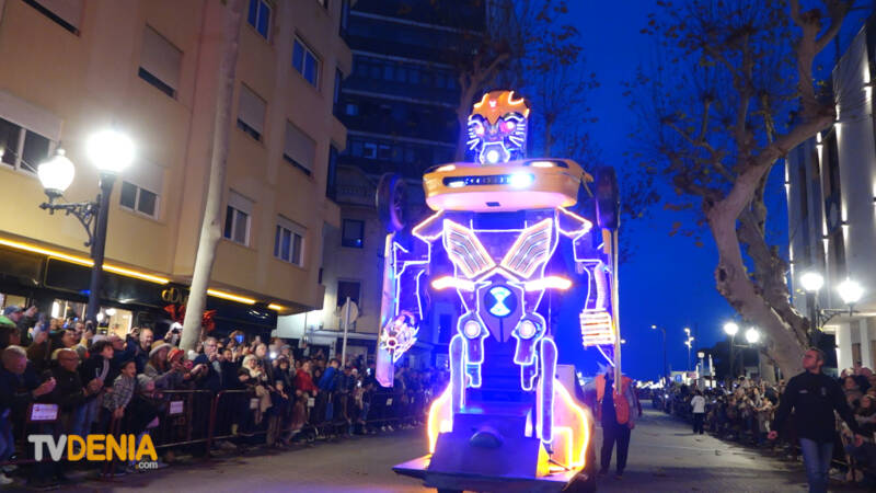 Al inicio de la cabalgata personajes diversos eran aclamados por los niños y niñas, pero sin duda este año uno de los atractivos ha sido un Transformer.
