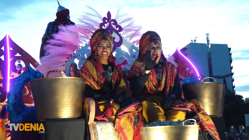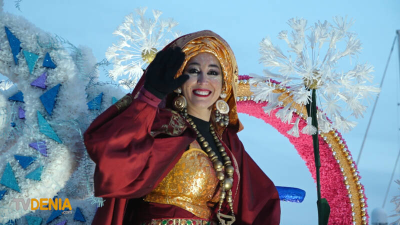 Sus Majestades los Reyes de Oriente han llegado a Dénia, su llegada nuevamente ha sido en barco en el puerto donde les esperaban sus carrozas para recorrer la ciudad.
