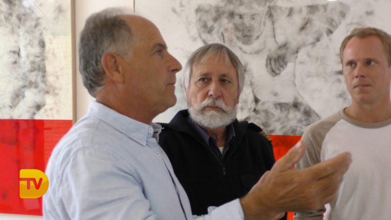 El director de Marina de Dénia, Gabriel Martínez y los pintores Anton Gudzykevich y Tomás Sivera, han presentado a la prensa la obra del artista de Xàbia, Tomás Sivera, que se expondrá en la nueva galería de arte de Marina de Dénia. “Es para nosotros un honor que un pintor como Tomás haya querido traer su obra a esta pequeña galería que hemos puesto a disposición de los artistas de nuestra comarca”, ha apuntado Gabriel Martínez.