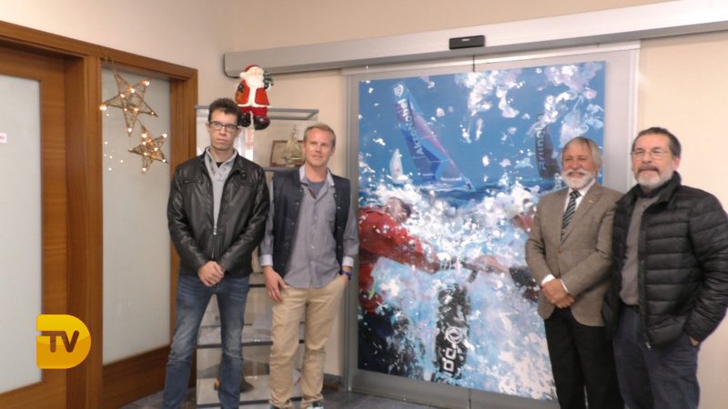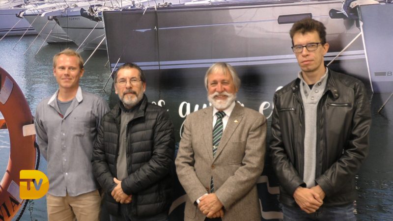El director de Marina de Dénia, Gabriel Martínez y los artistas Juan Caravaca, Joan Castejón y Anton Gudzykevich han presentado la primera muestra colectiva que acogerá la sala de exposiciones de Marina de Dénia.
