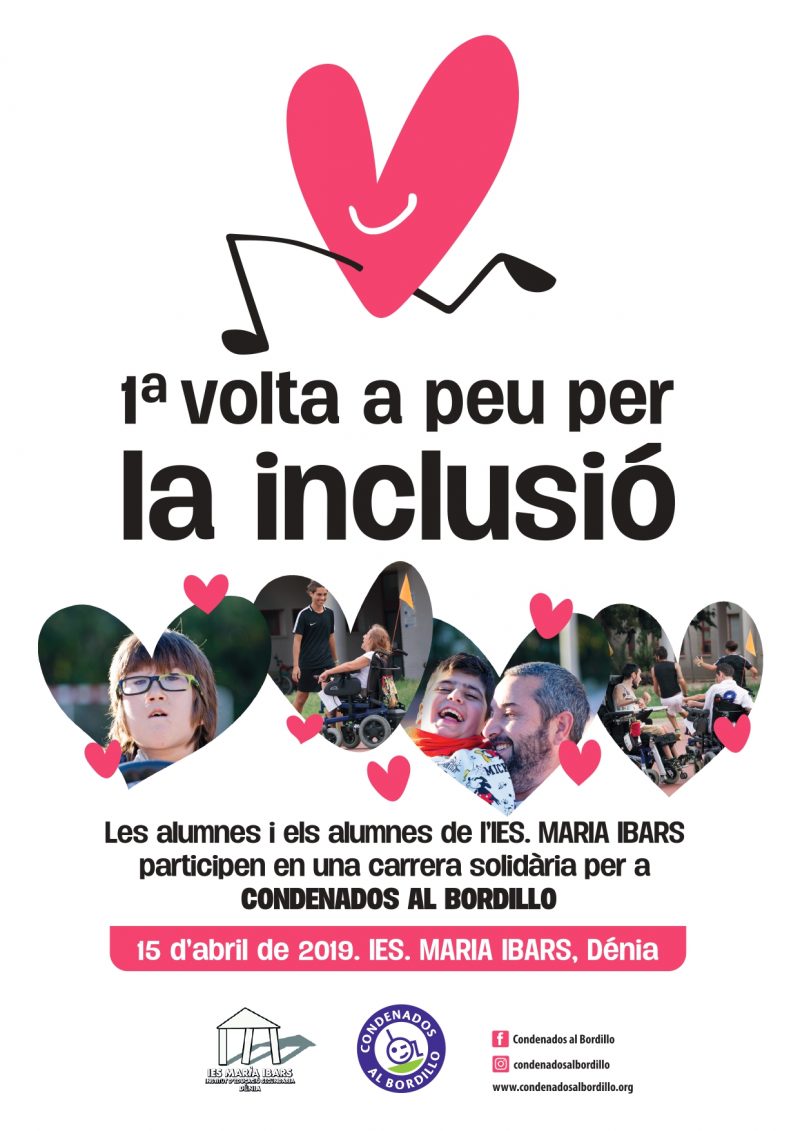 Compartir, empatizar y disfrutar de una jornada solidaria y recreativa es el motivo por el cual la Asociación Condenados al Bordillo y el IES Maria Ibars han organizado la primera “Volta a Peu per la Inclusió”, que tuvo lugar el pasado 15 de abril y en la que participaron más de 500 personas entre alumnado del Instituto, del colegio Raquel Payà y miembros de Condenados.