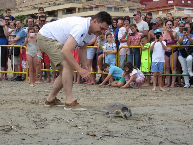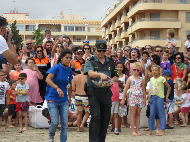 Más de medio millar de personas participa en la suelta de tortugas marinas en la playa Punta del Raset