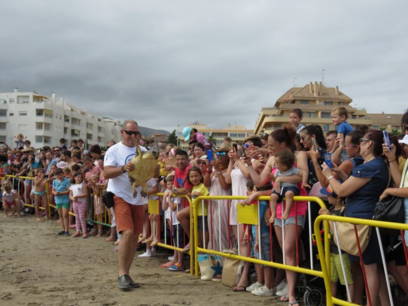El lugar elegido para su reencuentro con su hábitat natural fue la playa de Punta del Raset de Dénia. Más de medio millar de personas se congregó en esta playa el sábado por la mañana para ver la vuelta a casa de los tres ejemplares de tortuga boba (Caretta caretta).
