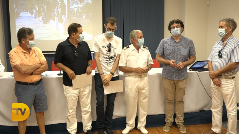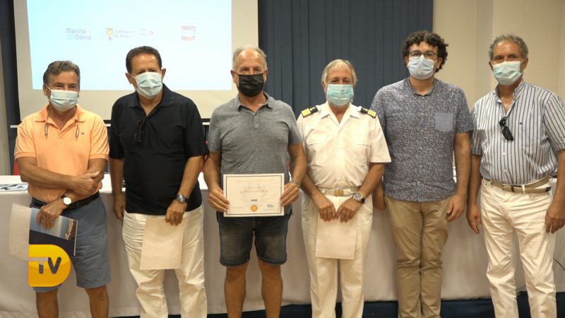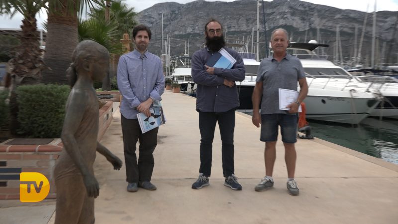 El concejal de Cultura del Ayuntamiento de Dénia, Raúl David García, el director de Marina Dénia, Gabriel Martínez y el escultor y presidente del jurado, Toni Marí han entregado los premios a los ganadores de la III edición de la exposición “Esculturas frente al mar”.