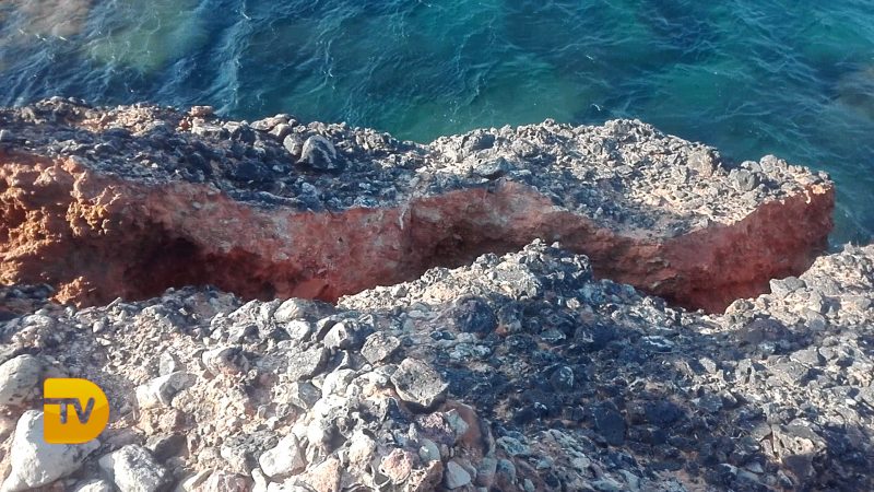 Este lunes una gran roca se ha desprendido en el tramo final de les Rotes, en las cercanías del Restaurante Mena. Un desprendimiento que ha dejado al aire la parte superior del empedrado dejando vacía la parte inferior y una grave peligrosidad.