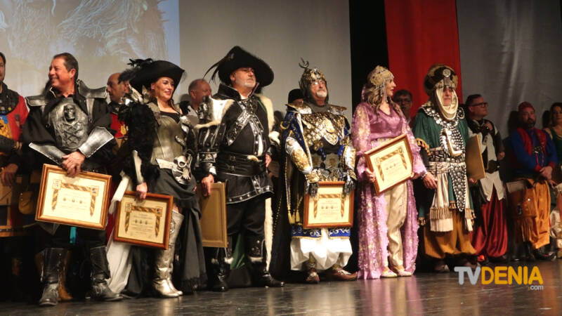 Seguidamente los Embajadores, abanderadas y Capitanes fueron presentados con lectura previa de los secretarios de la Filà Marins Corsaris y Filà Almorávides. Que recibieron detalles de sus antecesores.
