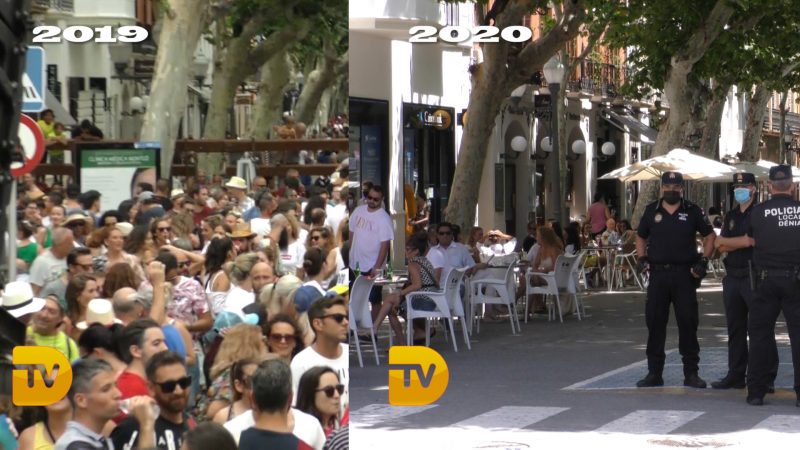 Primer día de fiesta de Dénia 2020 sin fiestas, en tvdenia.com hemos salido a la calle y hemos visto grupos de gente en las terrazas, pero con las distancias de seguridad permitida, nada de aglomeraciones y controles policiales. Las imágenes han sido tomadas desde las 13:00 horas hasta las 14:00 y tal día como, el pasado año, no cabía un alfiler. La gente ha sido responsable.