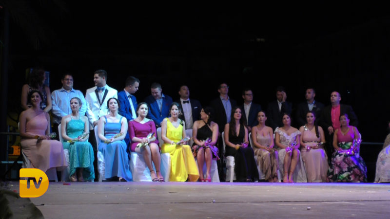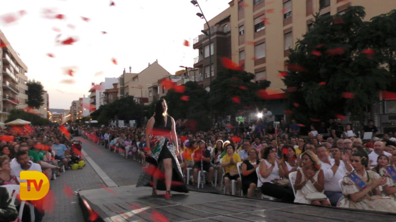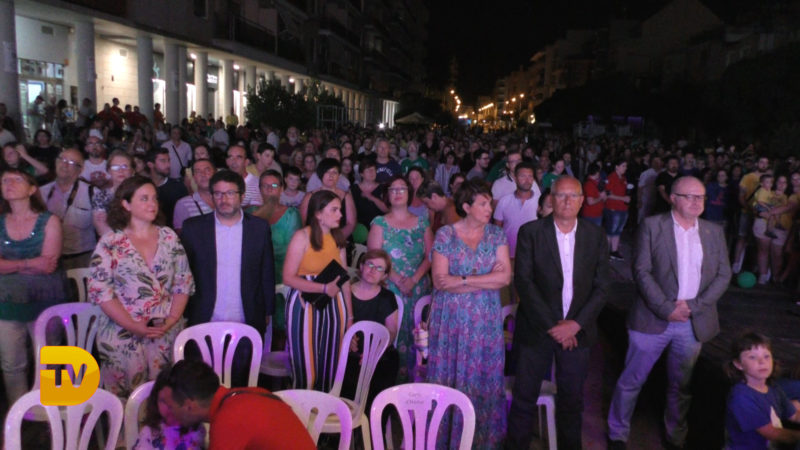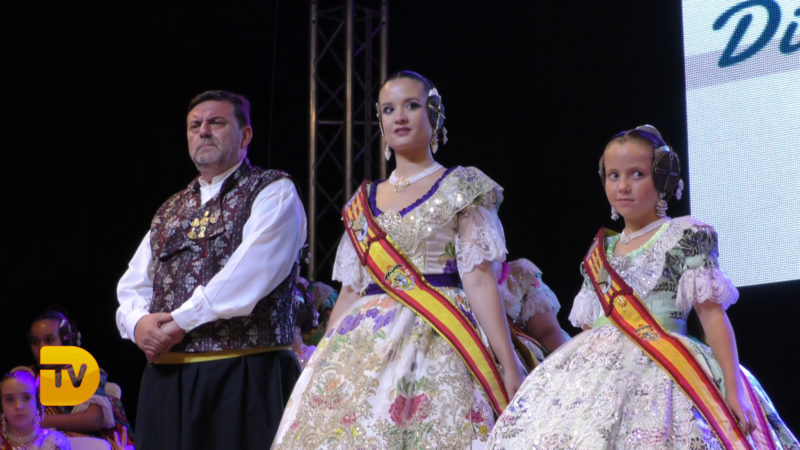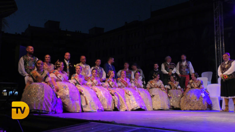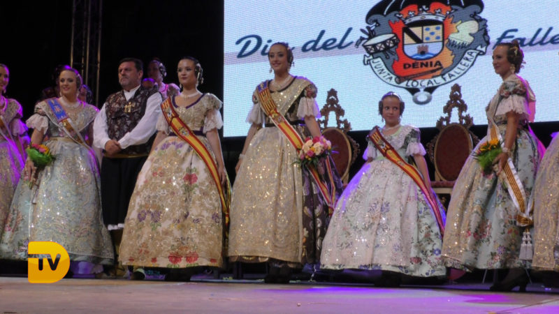 La Fallera Major de València i la seua cort d’honor lluïren dalt de l’escenari mentre sonaven els himnes de Dénia i València.