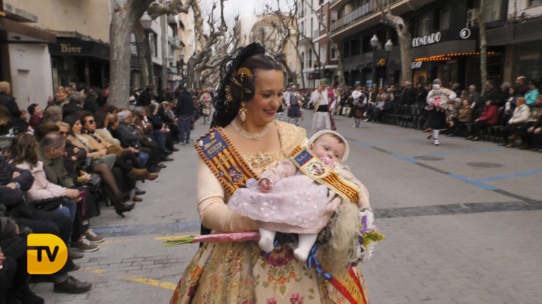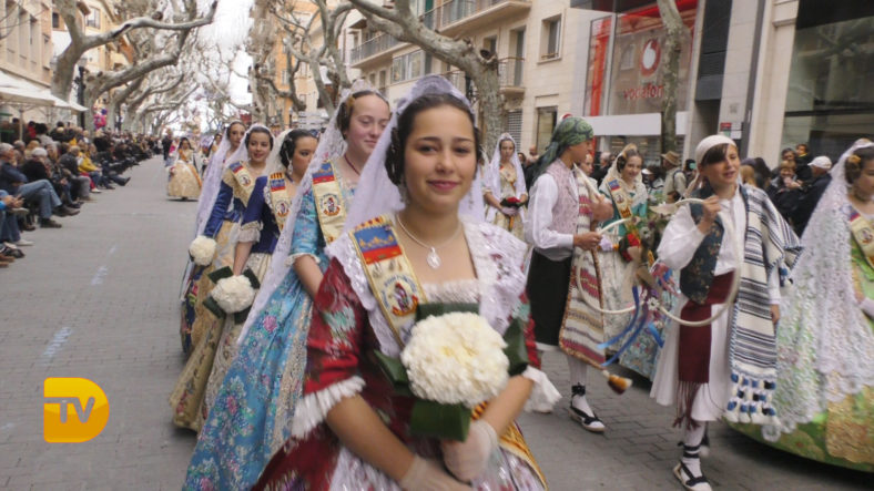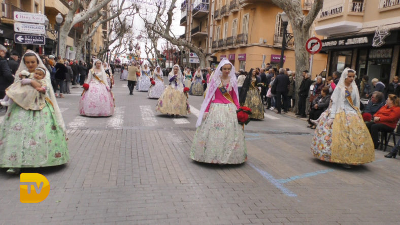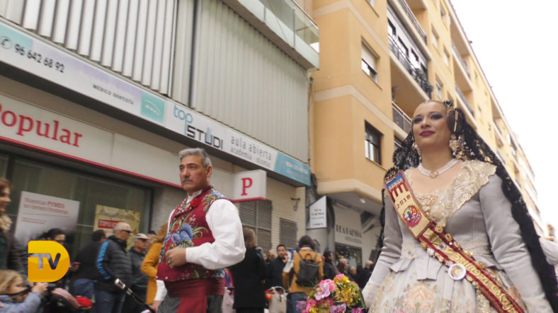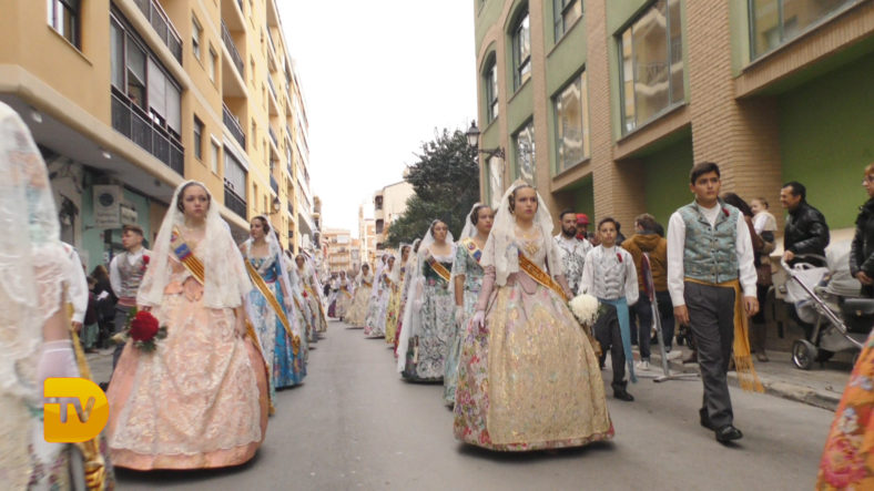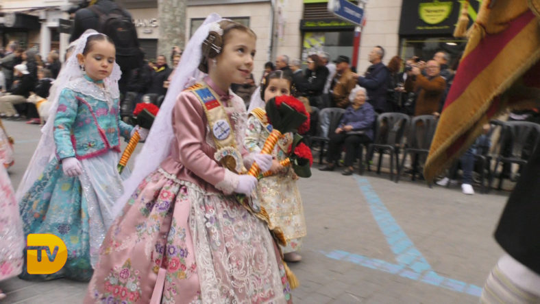 Milers de fallers i falleres han desfilat en devoció i sentiment en l’ofrena de flors a la Mare de Déu. L’ordre del desfile va marcat pel premi faller dels monuments grans. Començant per la Falla Camp Roig fins a arribar a la Falla Baix la Mar guanyadora del primer premi seguit de Junta Local Faller i algun convidat d’altres poblacions.
