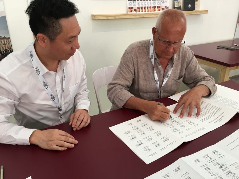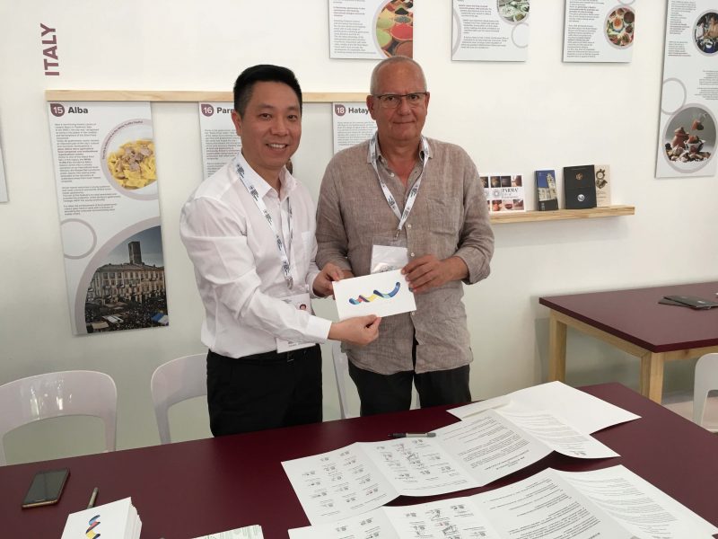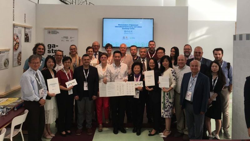 En el pabellón gastronómico se procedió a la firma del convenio de colaboración entre las 26 ciudades gastronómicas y la ciudad de Shundé mediante el cual las ciudades de la gastronomía podrán utilizar el Centro Internacional para la Gastronomía y la Cultura de la ciudad china para sus actividades de promoción y de cariz comercial. En este sentido, la delegada de Shundé, Fang Li, se reunió con el alcalde de Dénia, Vicent Grimalt, para explicarle la dimensión de esta colaboración e invitar en Dénia a la inauguración del centro el próximo mes de octubre. Al mismo tiempo, ofreció a las ciudades la posibilidad de abrir en Shundé negocios y empresas relacionadas con la gastronomía y, más concretamente, en su nuevo parque temático y de ocio, que abrirá las puertas al público junto con el mencionado centro internacional de gastronomía.