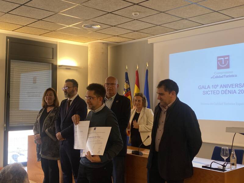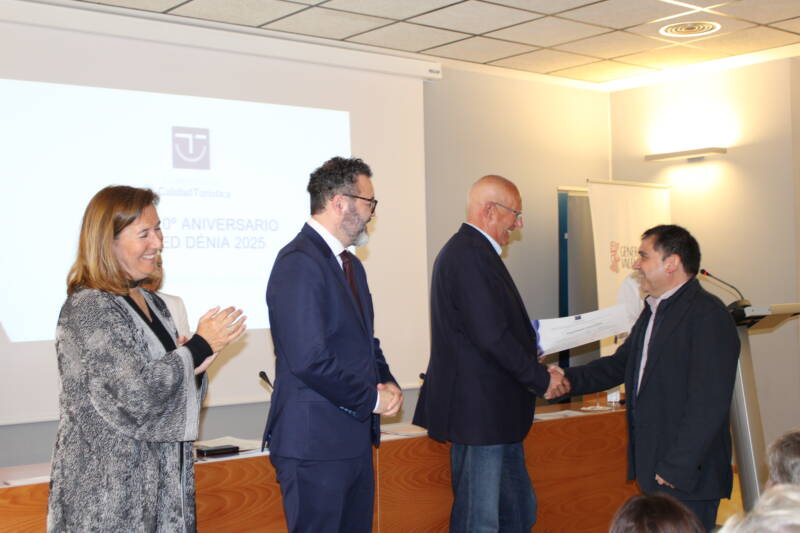 El alcalde de Dénia también ha querido agradecer “el trabajo y la constancia en mejorar” de las empresas de la ciudad distinguidas con el compromiso de calidad turística -86 actualmente-, así como el apoyo del departamento municipal de Turismo en el desarrollo de este proyecto. Grimalt ha recordado que Dénia, por tercer año consecutivo, ha obtenido el tercer premio SICTED en la categoría de mejor destino turístico, hecho que no es fruto de la casualidad, sino del esfuerzo que realiza el empresariado, el departamento de Turismo y la necesaria colaboración público privada.