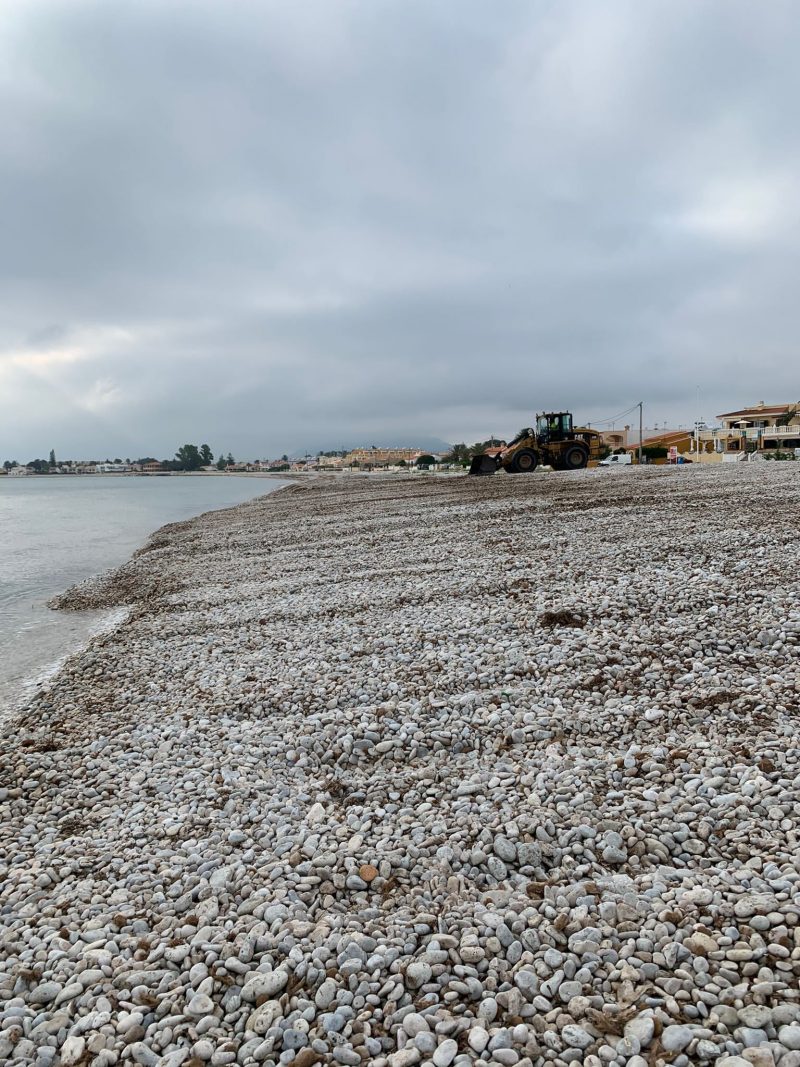 Los trabajos de acondicionamiento de las playas de Dénia para el verano 2021 han llegado ya a L’Almadrava.
