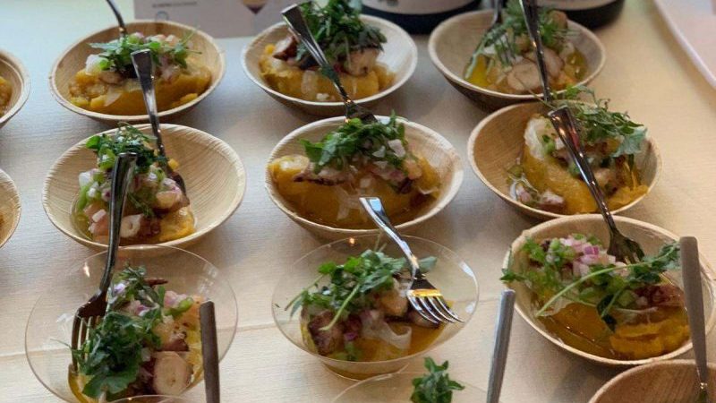 En el caso de Dénia, los chefs del restaurante El Raset Fernando González y José Bañuls prepararon una tapa de ensalada de pulpo, hinojo encurtido, boniato y llicsó y “ronyoses” sorpresa con diferentes rellenos de naranja, boniato, calabaza e higo. Las tapas de Dénia estuvieron acompañadas por los vinos de la bodega Les Freses, de la mano de su propietaria, Mara Bañó.