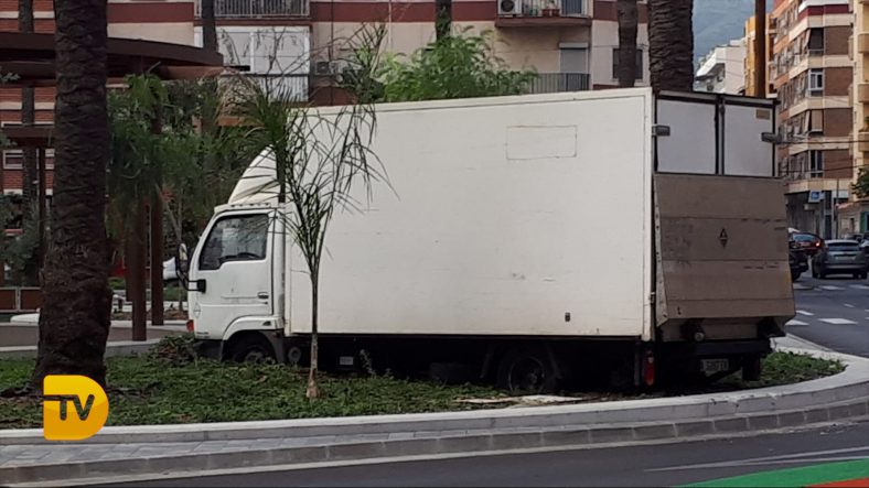 Durante la mañana de este lunes, alrededor de las 7: 45 horas, un camión de reparto ha acabado aparcado en la antigua estación de autobuses de Archiduque Carlos y lo que ahora es un parque ajardinado.