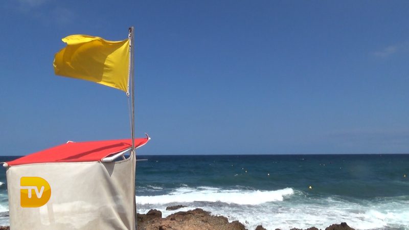 La bandera amarilla ondeaba esta tarde al final de Las Rotas en el puesto que allí tiene Cruz Roja. Prácticamente nadie se ha adentrado en el mar, pero a las 15:30 un hombre demandaba auxilio urgente moviendo brazos y gritando.