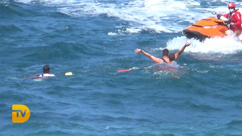 El hombre auxiliado sabia nadar con cierta destreza, pero el oleaje al final de Las Rotas rompía con cierta fuerza y le impedían regresar a las costas.