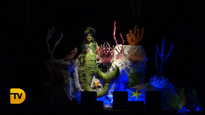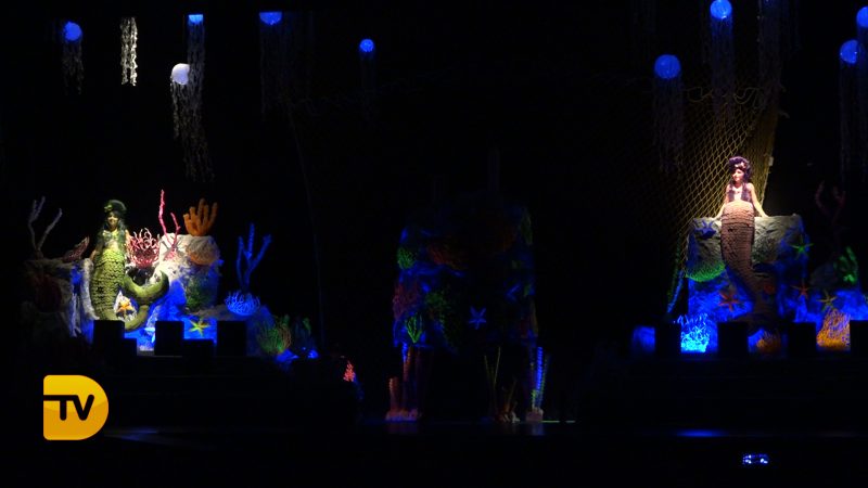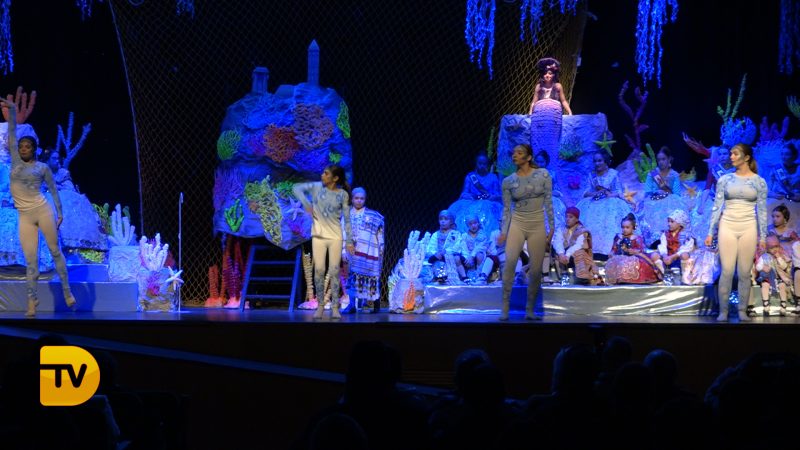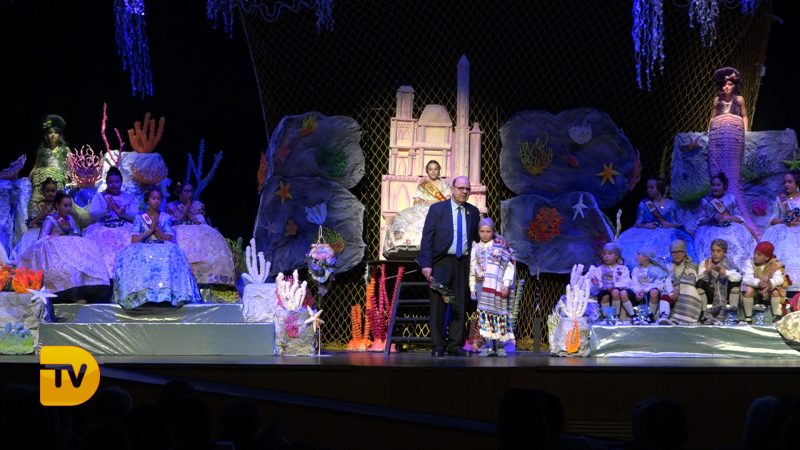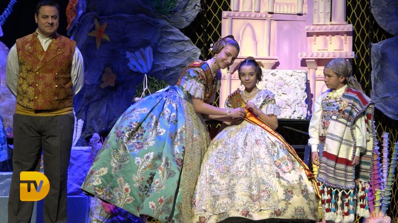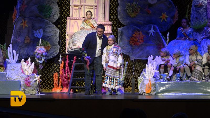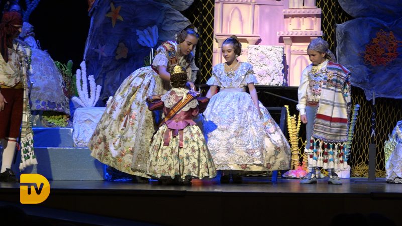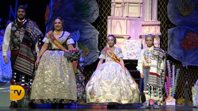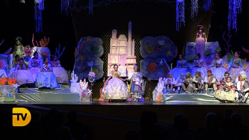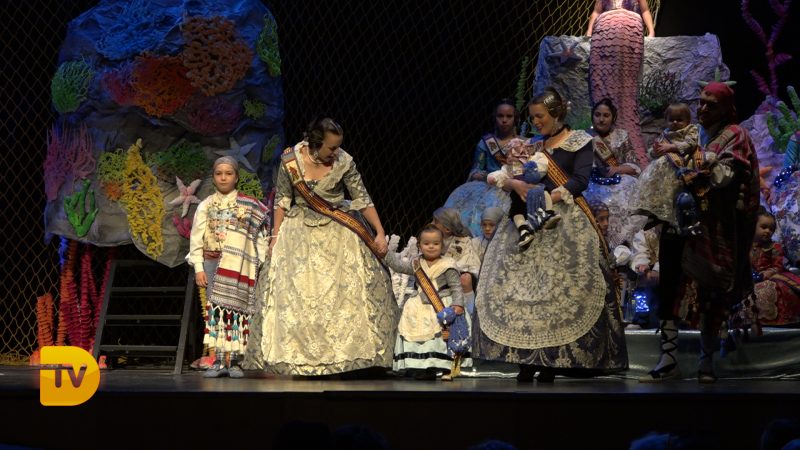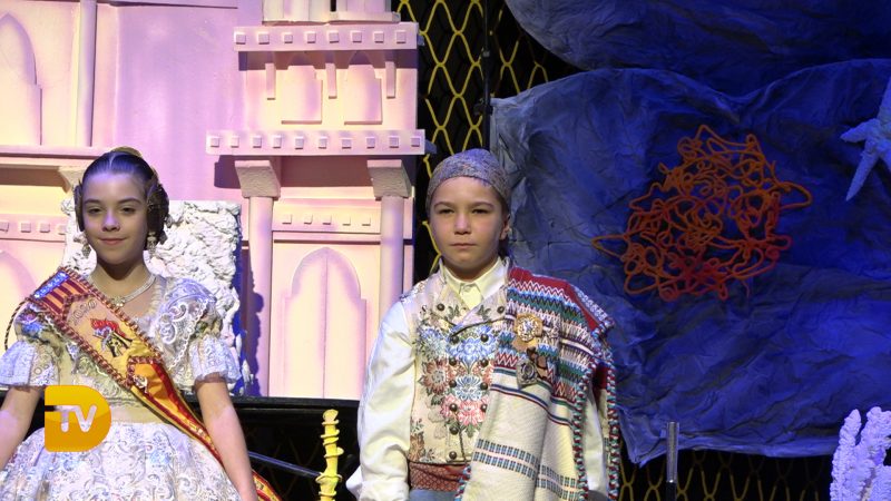 Un món màgic i diferent en la presentació infantil de Noa Sanchís i Saul Giménez de la Falla Campaments. Així ha sigut l’acte de presentació infantil d’aquesta comissió que van formar un mar ple de nereides i diferents elements marins, meduses, taurons…