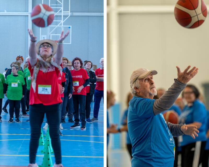 Después de un buen calentamiento para preparar el cuerpo, se iniciaron las pruebas, organizadas en diferentes puntos del polideportivo de Xaló. Entre estas había dos de atletismo, una de ellas de carrera de relevos y otra de lanzamiento de peso, en las que se pudo ver el buen estado de forma de nuestra gente mayor. Otra de las pruebas, y una de las preferidas por los participantes, fue el lanzamiento de bolos, que ha puesto a prueba su puntería. Ya dentro del pabellón, se realizó la cuarta prueba, que combinaba un circuito de habilidad en lanzamientos a canasta, todo un reto de coordinación y cooperación para los participantes.